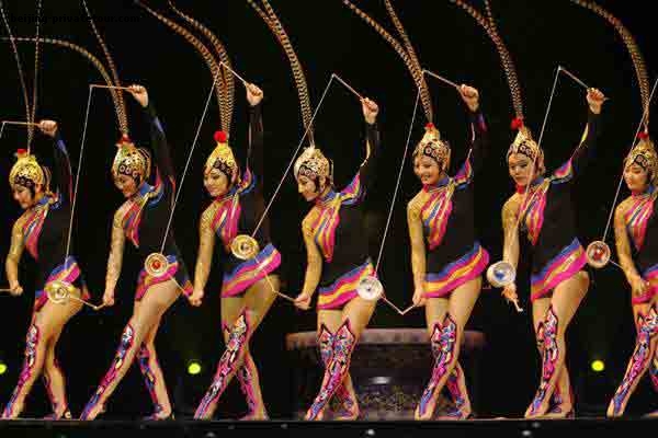 Chinese acrobatics is a pearl in the treasure house and ranks among the best arts in the world.The history of acrobatic show has been existent for more than two thousand years.The acrobatic shows is characterized by feats of strength and daring performed cleverly,precisely and accurately,and the ability of retaining balance in motion.To become a competent acrobat,students must has long stressed the basic training of the waist and legs from the time they are only 6 or 7 years old.Because the techniques employed in acrobatics are extremely difficult and risky,students must endure a good deal of pains for their gain.In the long course of development,the Chinese acrobatic art has formed its own style.The ancient acrobatics stemmed from the people's life and had a close link with their life and productive labor.Instruments of labor like tridents wicker rings,tables,chairs,jars,plates,and bowls were used in their performances of "Lion Dance",Jar Tricks","Hoop Diving""Flying Trident","Spring-Board Stunts","Balance on Chairs"," and etc.When you watch a acrobatics show,you are strongly impacted both mentally and physically.It is truly and unforgettable experience.