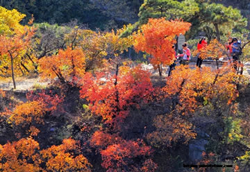 Fragrant Hills Park is located in the western suburbs of Beijing. It used to be a Royal garden with steep terrain and lush mountains. The forest coverage rate of the parkis high, and the landscape covers "Great mountains, famous springs, old trees,red autumn leaves”, which is a natural oxygen bar and summer resort in Beijing. Fragrant Hills’red autumn leaves is one of the most well-known scenes. The red autumn leavesin Fragrant Hills are mainly Cotinus coggygria with a total amount of more than one hundred thousand. In addition, there are Acer truncatum, Acer buergerianum, Acer mono and other 30 varieties of trees. The annual autumn season, the Cotinus coggygria after the baptism of frost all over the mountains turns red, like afire burning the Fragrant Hills. The Sen wat, Yu Huaxiu and Levant Pavilionare all the best place to see the red leaves scenes. Go to Fragrant Hills Park to enjoy the red autumn leavesis definitely a tour in autumn in Beijing.